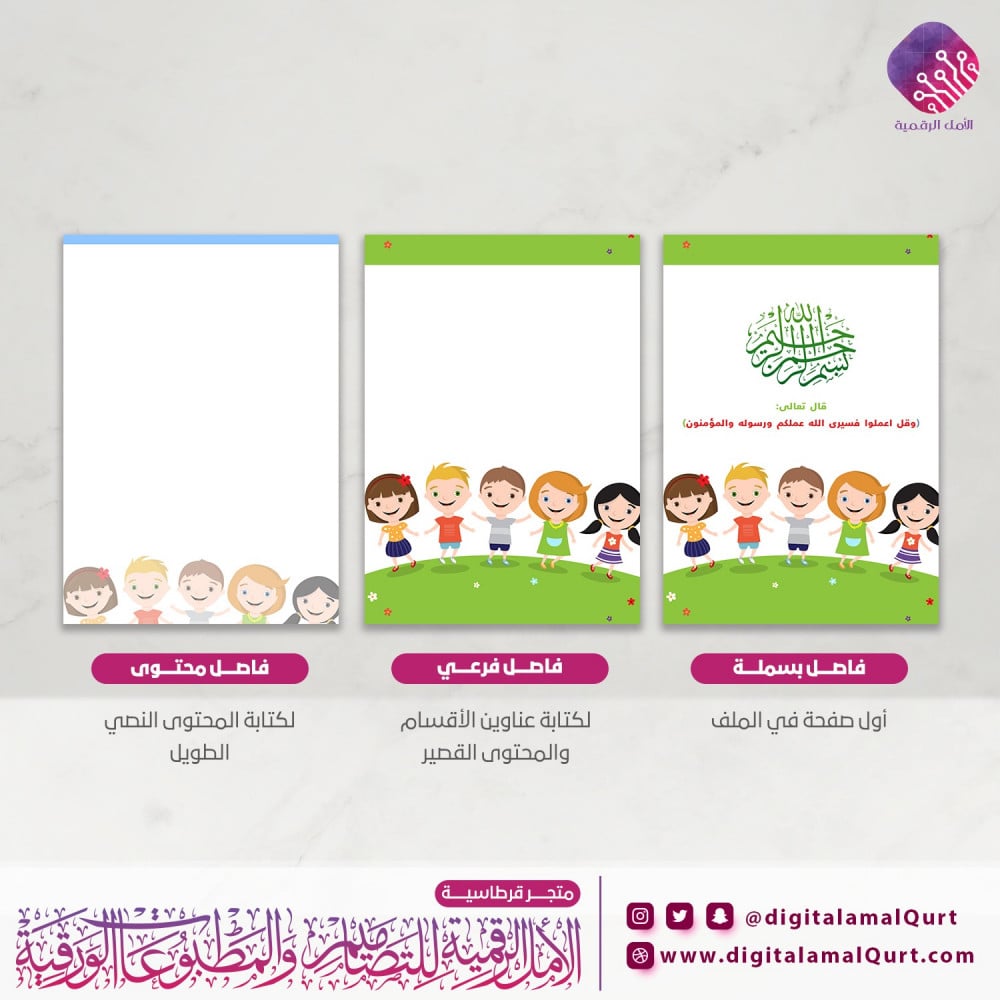 بعد استكمال عملية الدفع .. سيتم إرسال رابط يحتوي على التصاميم بصيغة صورة عالية الدقة بالاضافة إلى ملفي وورد مضافة فيها تصميم الفاصل الفرعي وتصميم فاصل المحتوى كخلفية جاهزة للكتابة عليها مباشرة
