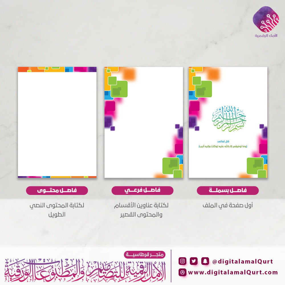 بعد استكمال عملية الدفع .. سيتم إرسال رابط يحتوي على التصاميم بصيغة صورة عالية الدقة بالاضافة إلى ملفي وورد مضافة فيها تصميم الفاصل الفرعي وتصميم فاصل المحتوى كخلفية جاهزة للكتابة عليها مباشرة