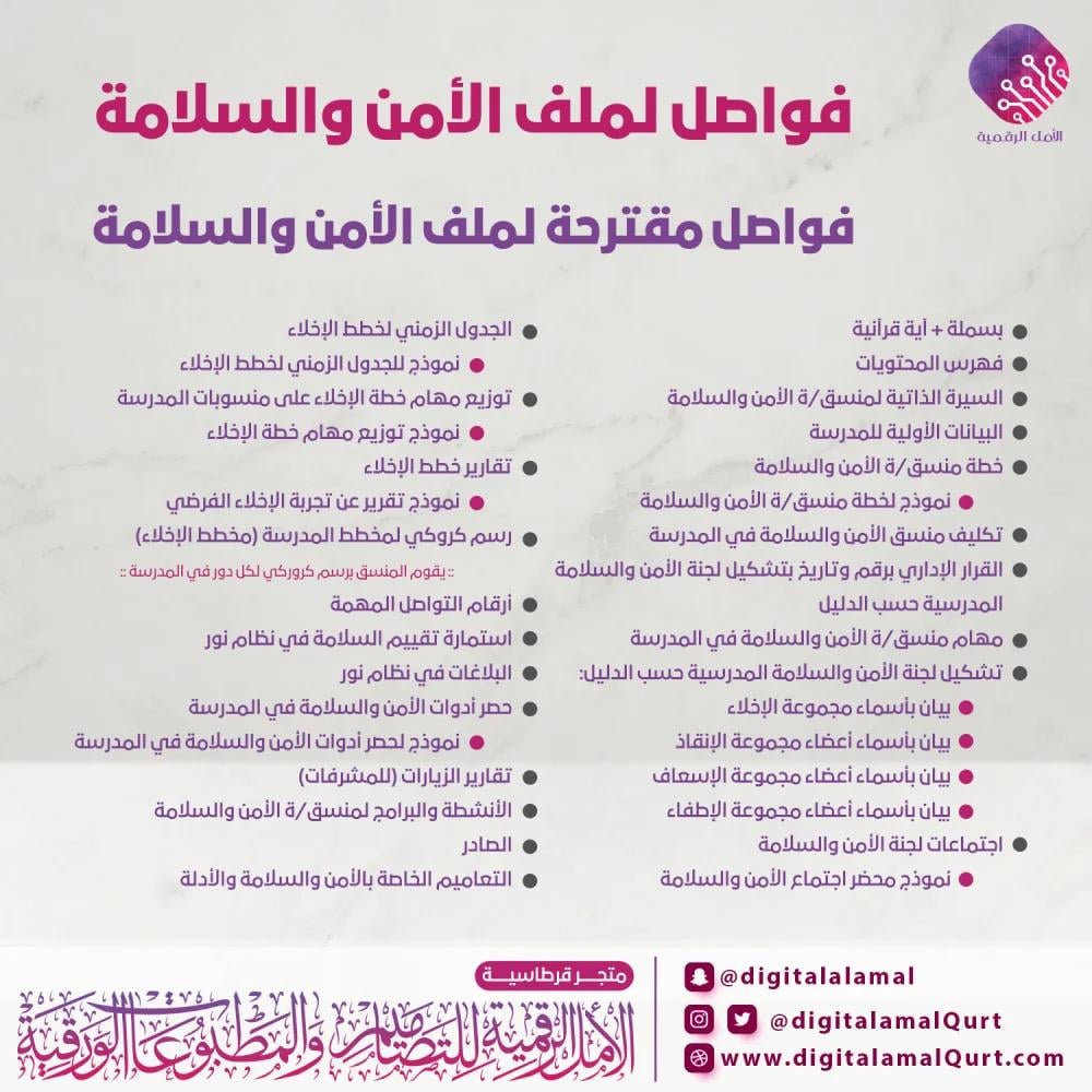 هذا الملف صُمم ليوفر تنظيمًا دقيقًا، سهولة في التوثيق، ومطابقة لمتطلبات الأمن والسلامة المدرسية.