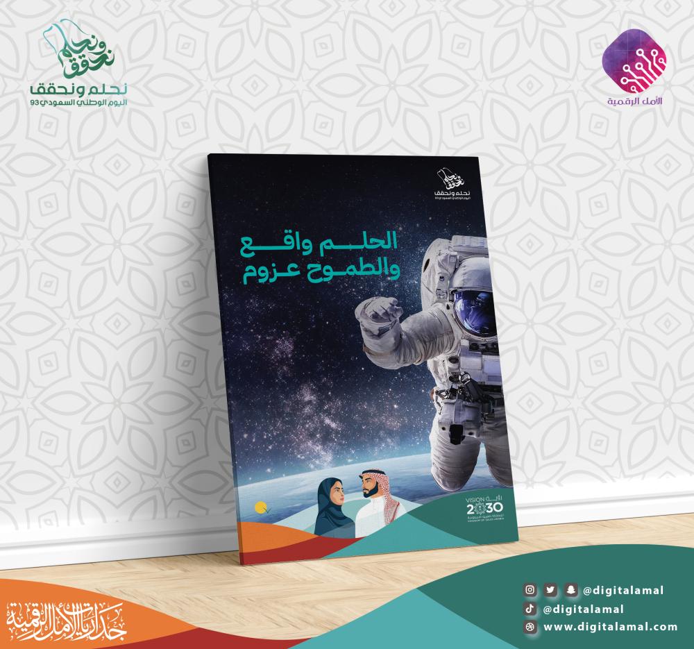 لوحة جدارية بعبارة حلمنا واقع والطموح عزوم